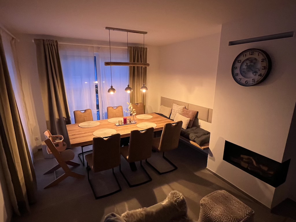 Der Kamin bringt auch an den Tisch Gemütlichkeit – ideal für lange Spieleabende.